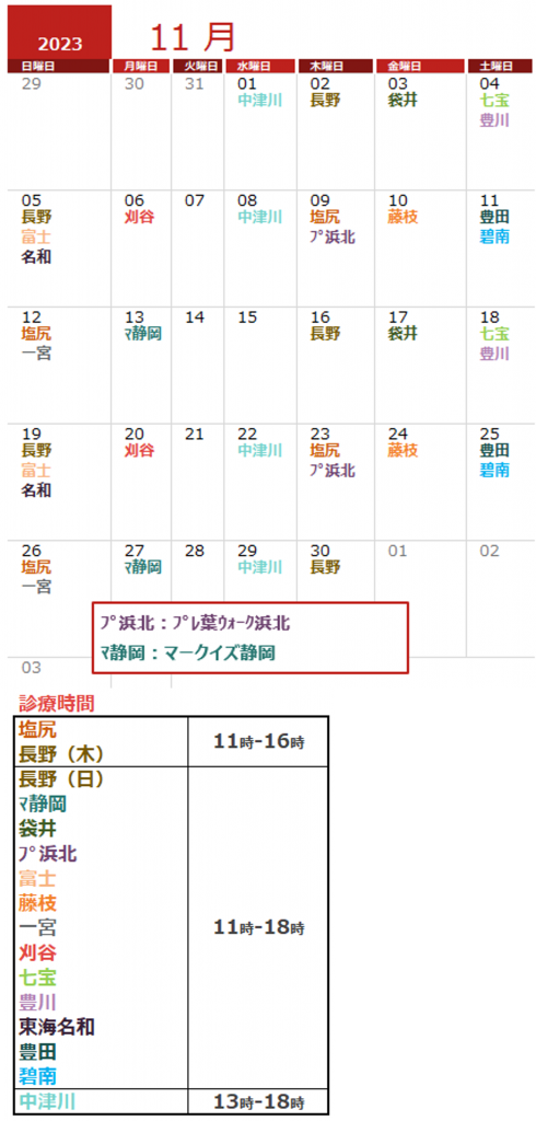 11月の開院スケジュール
